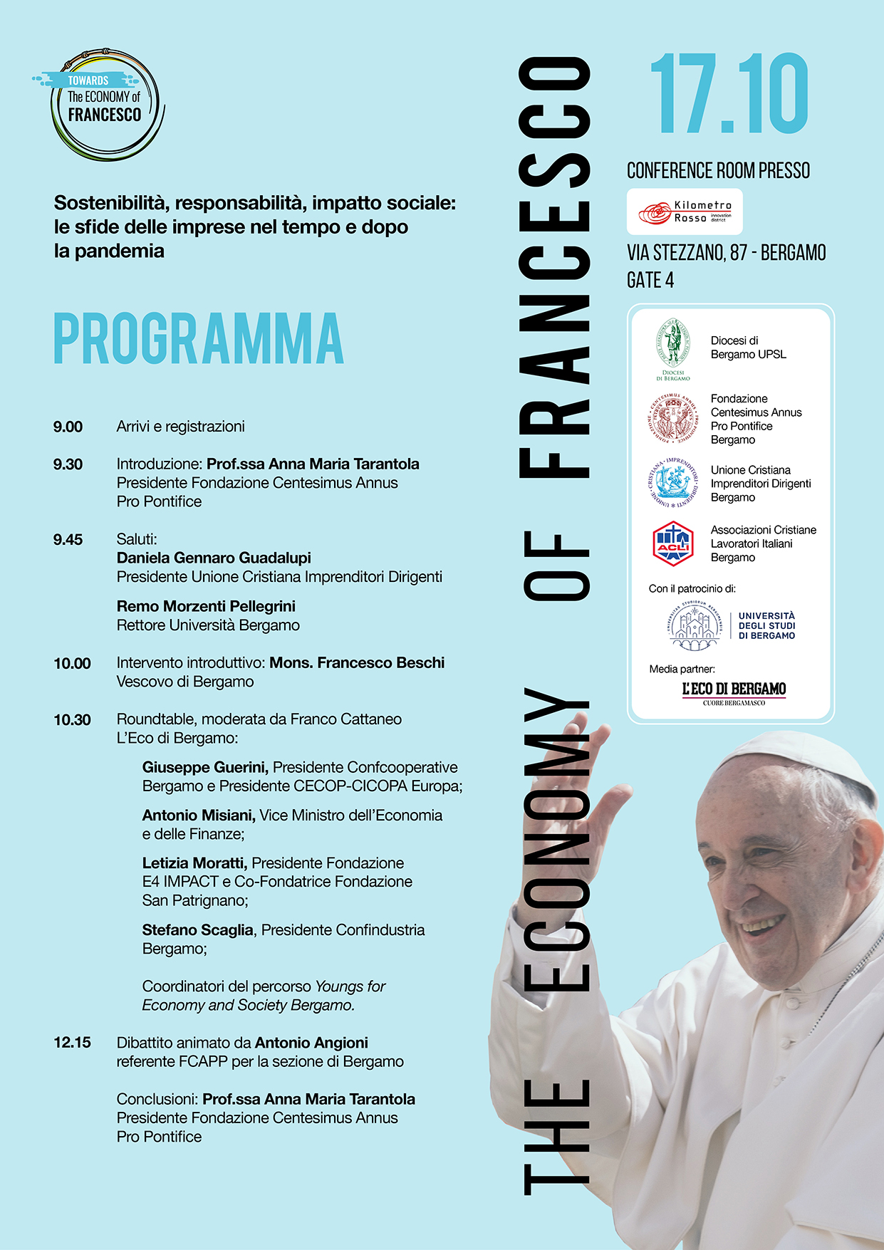 Il 17 ottobre 2020 il gruppo di Bergamo ha organizzato un Convegno sul tema: Sostenibilità, responsabilità, impatto sociale: le sfide delle imprese nel tempo e dopo la pandemia.