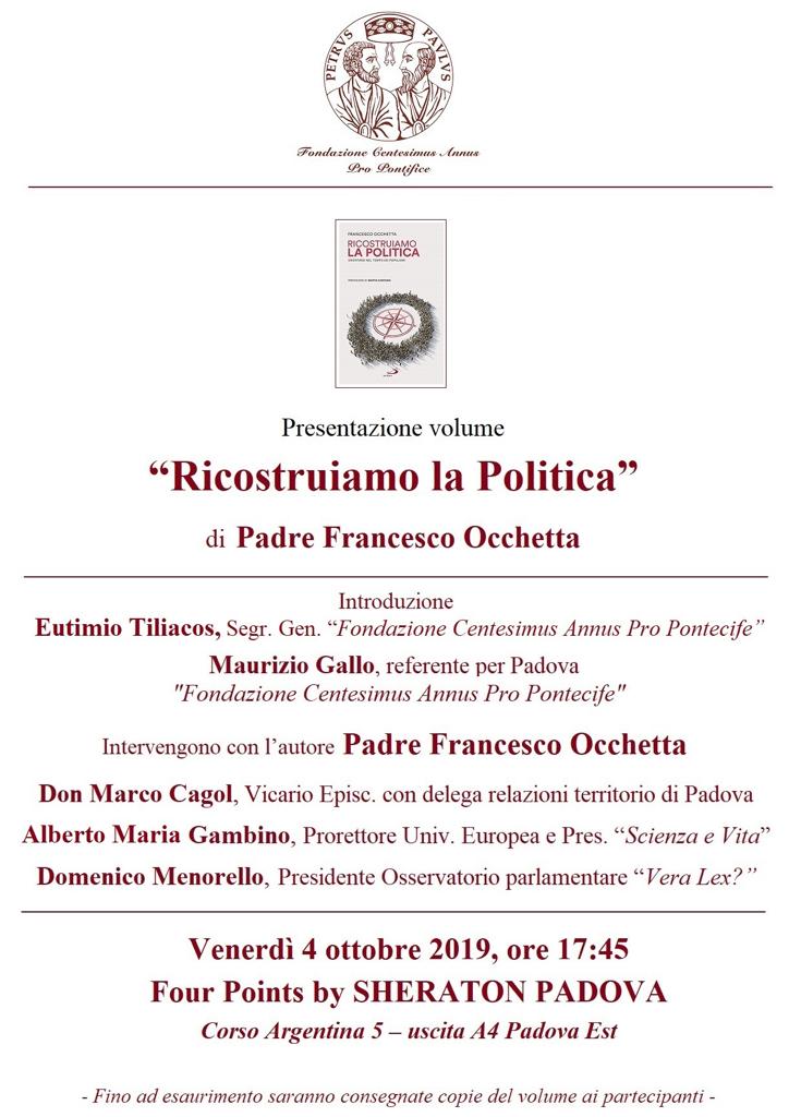 Presentazione volume Ricostruiamo la Politica di Padre Francesco Occhetta – 04/10/19