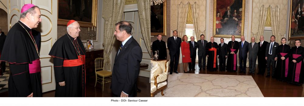 Al termine della riunione consiliare, nel corso della quale è stato tra l’altro cooptato come nuovo consigliere il dott. Gianluigi Longhi, nostro Referente a Bologna, tutti i Consiglieri sono stati prima ospitati a colazione presso la Nunziatura Apostolica ricevuti dal Nunzio S.E.R. Mons. Tommaso Caputo, e successivamente si sono recati nel Palazzo presidenziale per essere ricevuti dal Presidente della Repubblica Sua Eccellenza Dr. George Abela.